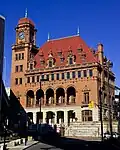 Richmond recovered quickly from the war, thriving within a year of its burning.[23] In 1786, the Virginia Statute for Religious Freedom, drafted by Thomas Jefferson, was enacted, separating church and state and advancing the legal principle for freedom of religion in the United States.[24] In 1788, the Virginia State Capitol, designed by Jefferson and Charles-Louis Clérisseau in the Greek Revival style, was completed.