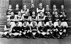 The following season, the club became embroiled in a feud with umpire Allen, whom the Tigers accused of failing to curb field invasions and, in particular, the dubious tactics of arch-rival North Melbourne. In the 10 September 1904 match, during which a significant number of Richmond players sustained serious gashes, and despite the earnest requests of the Richmond players, field umpire Allen refused to exercise his legitimate, official power to check the boots of the North Melbourne players for "spikes" on the soles of their boots.[17] When the two clubs were scheduled to meet in the 1904 VFA Grand Final, Richmond announced that they wouldn't play with Allen as umpire. The VFA called Richmond's bluff, and appointed Allen as umpire for the match, meaning that the Grand Final was scratched and North Melbourne won the premiership on forfeit.[18][19][20]