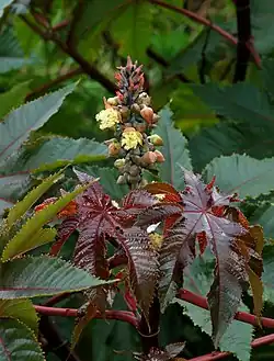 Ricinus communis, the castor bean[1] or castor oil plant,[2] is a species of perennial flowering plant in the spurge family, Euphorbiaceae. It is the sole species in the monotypic genus, Ricinus, and subtribe, Ricininae.
