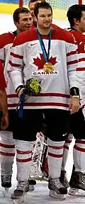 ![]() Rick Nash with a gold medal during the 2010 Winter Olympics. | ||