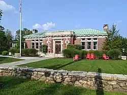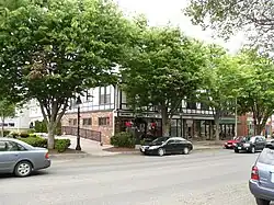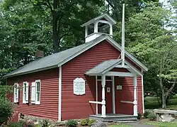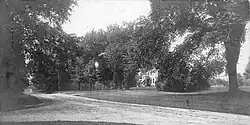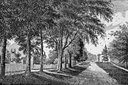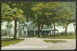 Ridgefield was first settled by English colonists from Norwalk in 1708, when a group of settlers purchased land from Chief Catoonah of the Ramapo tribe.[3] The town was incorporated under a royal charter from the Connecticut General Assembly issued in 1709.[2] Ridgefield was descriptively named.[4] The most notable 18th-century event was the Battle of Ridgefield on April 27, 1777. This American Revolutionary War skirmish involved a small colonial militia force (state militia and some Continental Army soldiers), led by, among others, General David Wooster, who died in the engagement, and Benedict Arnold,[5] whose horse was shot from under him.[3] They faced a larger British force that had landed at Westport and was returning from a raid on the colonial supply depot in Danbury. The battle was a tactical victory for the British but a strategic one for the Colonials because the British would never again conduct inland operations in Connecticut, despite western Connecticut's strategic importance in securing the Hudson River Valley.[2] Today, the dead from both sides are buried together in a small cemetery on Main Street on the right of the entrance to Casagmo condominiums: "...foes in arms, brothers in death...". The Keeler Tavern, a local inn and museum, features a British cannonball still lodged in the side of the building. There are many other landmarks from the Revolutionary War in the town, with most along Main Street.