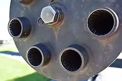 For field artillery pieces, the extended range, full bore (ERFB) concept developed in early 1970s by Dennis Hyatt Jenkins and Luis Palacio[25] of Gerald Bull's Space Research Corporation for the GC-45 howitzer replaces the bourrelet with small nubs, which both tightly fit into lands of the barrel.[26][27] Guns capable of firing these projectiles have achieved significant increases in range, but this is compensated with a significantly (3–4 times) decreased accuracy, due to which they were not adopted by NATO militaries.[28] Unlike a shell narrower than the gun's bore with a sabot, ERFB shells use the full bore, permitting a larger payload. Examples include the South African G5 and the German PzH 2000. ERFB may be combined with base bleed.