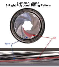 • Forging the barrel over a mandrel containing a reverse image of the rifling, and often the chamber as well (hammer forging);