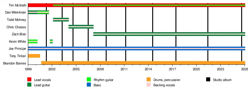 ![]() Rise Against at Rock am Ring 2023. Left to right: Zach Blair, Tim McIlrath, Brandon Barnes (drums), and Joe Principe | |