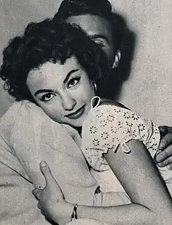 Moreno began her first dancing lessons soon after arriving in New York with a Spanish dancer known as "Paco Cansino", who was a paternal uncle of film star Rita Hayworth.[12] When she was 11 years old, she lent her voice to Spanish-language versions of American films.[13] She had her first Broadway role, as "Angelina" in the 1945 production of Skydrift, by the age of 13, which caught the attention of Hollywood talent scouts. Moreno said she was raped by her agent while she was a teen actor.[14][15]