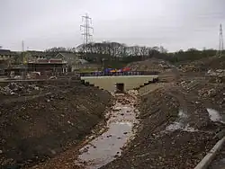 In July 2000 there was a setback for the clean-up programme when a pollution incident affected approximately 2+1⁄2 miles (4 kilometres) of the river between Rawtenstall and Ramsbottom, causing the death of more than 36,000 fish.[67] The large number of fish killed did however serve to illustrate how much the river had improved from the lifeless, "melancholy stream" of the 1950s. In 2005 a £1M project to make the river "the cleanest it has been for decades" was announced by United Utilities. The improvements included fitting filters on sewers in Lower Broughton to ensure litter was not washed into the river, as part of a scheme to improve overflows across Adlington, Wigan, Chorley, Rochdale and Bury.[68] Then in October 2008 United Utilities announced that work on the Ringley Fold Wastewater Works in Stoneclough, to be completed by the end of the year, should increase the number of fish in the river and "massively improve the environment locally so walkers, canoeists and anglers will all reap the benefits." The company said that this was to be the biggest scheme that they had undertaken in the region, and the project manager was quoted as saying: