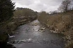 From its source until shortly after its confluence with the River Croal, the river runs through a landscape formed from rocks of the late Carboniferous Coal Measures and the underlying (and therefore older) Millstone Grit, consisting mostly of a series of sandstone and shales. The lower sections of the river run through a landscape where the bedrock is of Permian and Triassic age, though alluvial and river terrace deposits often obscure the rock strata.[12] The glaciers of the Pleistocene epoch radically re-shaped the landscape and then retreated, leaving behind deposits of sand, pebbles and boulder clay that formed the fluvioglacial ridges of the lower Irwell Valley.[13] Ashclough, a 5.08-hectare (12.6-acre) site which comprises the steep banks of the river between Prestolee and Little Lever, has been designated an SSSI because of its geological interest, primarily because it is the best site in the area displaying the Ashclough marine band and its associated strata. Ashclough is a site of national importance for interpreting the coal measures palaeogeography of Great Britain.[14]