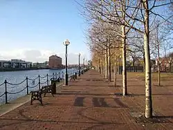 ![]() The River Irwell at Salford, looking towards Manchester city centre | |