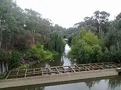 First, Second and Third Creeks have been particularly heavily modified. Some sections have been converted to concrete channels; others run through landscaped private gardens and some run in underground pipes. Much of the original vegetation has disappeared from the creeks, particularly those closest to the city. Introduced species including olives, bamboo, boxthorn, watsonia and blackberries have displaced native flora.[12] There is some risk of flooding from all of these eastern suburbs creeks, as shown by the Floodplain Study, which includes plans and maps drawn up by the City of Burnside and neighbouring councils.[13]