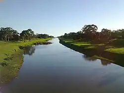 In recent years the river has been dually known by the indigenous Kaurna people's name of Karra wirra-parri (meaning river of the red gum forest), referring to the dense eucalyptus forest that lined its banks prior to clearing by early settlers.[39] This name, alternatively Karra-weera, only referred to the lake section of the river, between Adelaide and North Adelaide. It was known as Karrundo-ingga at Hindmarsh, Witoingga near the reed beds, and Yertala everywhere when in flood, which has survived as Yatala in the naming of various places in Adelaide.[35]