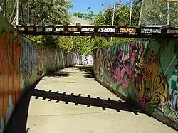 Second Creek arises in the Summertown area of the Adelaide Hills, north of First Creek, and flows through Greenhill, through Slape Gully, entering the more populated suburbs as it flows through the Michael Perry Reserve in Stonyfell and onwards through the eastern suburbs of Erindale, Marryatville, Kensington (open at Borthwick Park[18]) and Norwood,[19] much of it canalised underground[20] as far as St Peters. The St Peters section is an open canal shortly before it joins the Torrens. It was once called Hallet's Rivulet.[21] Stonyfell Creek, arising on the eastern boundary of Stonyfell, flows through Kensington Gardens, including an open stretch in the Reserve before again being piped underground under West Terrace, passing under Kensington Park and Beulah Park. It joins Second Creek near the junction of Magill and Portrush Roads.[17]