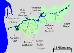 New site: http://www.amlrnrm.sa.gov.au Archived 24 October 2007 at the Wayback Machine Active on 9 September 2009. - ^ Smith & Twidale 1987, Figure 1 (River Torrens Catchment)