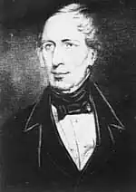 Dunmore Lang was also involved with the short-lived Riverina secession movement which was active in the 1860s. The movement was inspired by the success of the Victorian and Queensland secession movements and motivated by a desire to draw more public funds to the region and maintain the favourable land tenure the "squatter" pastoralists enjoyed. With the movement strongest in Deniliquin and Albury, Dunmore Lang, squatter and parliamentarian Gideon Lang (no relation) and other influential pastoralists joined with local newspaper editors, George Mott and David Jones in the campaign.[42] This culminated in presenting petitions to the Governor of New South Wales, Sir John Young and the Colonial Secretary, Edward Cardwell.[42][43] Soon after the movement fell apart due to the differences between the squatters on one side and the small farmers and townspeople on the other causing its objectives to become obscured by other associated issues such as inter-colonial tariffs and rail links.[42]