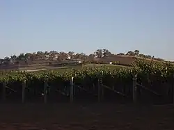 Irrigation made it possible to grow grapes for wine. The first grapes were planted at Hanwood in the spring of 1913 by John McWilliam and his eldest son Jack who had come to the district from their winery in Junee. Irrigation was by carting of water until the irrigation channels were opened a few months later.[76] The first grapes were picked in 1916 and sent to Junee for processing. Penfolds established its winery in the region in 1919.[36]
