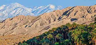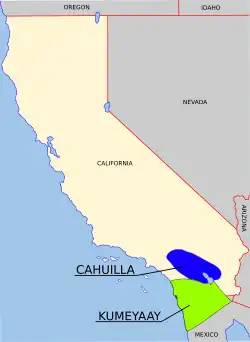The Indigenous peoples of the valleys, mountains and deserts of what is now Riverside County are the Serrano, the Payómkawichum, the Mohave, the Cupeno, the Chemehuevi, the Cahuilla, and the Tongva.[14][15] The Aguanga and Temecula Basins, Elsinore Trough and eastern Santa Ana Mountains are the traditional homelands of the Payómkawichum. The inland valleys in the Santa Rosa and San Jacinto Mountains and the desert of the Salton Sink are the traditional homelands of the Cahuilla.