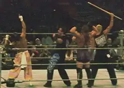 In 1998, Van Dam turned face and started a feud with The Triple Threat (Shane Douglas, Bam Bam Bigelow, and Chris Candido).[50] At House Party, Van Dam defeated Bam Bam Bigelow.[51] At Hostile City Showdown, Van Dam and Sabu defeated Axl Rotten and Balls Mahoney by disqualification.[52] The two went on to win a fatal four-way elimination tag team match later that night.[52] At CyberSlam, Van Dam and Sabu lost to World Heavyweight Champion Shane Douglas and Bam Bam Bigelow.[53]