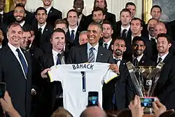 The Galaxy finished the season as Western Conference champions, and won the Supporters' Shield.[111] On 6 November, in his first full match, Keane scored in a 3–1 win over Real Salt Lake to book a place in the 2011 MLS Cup.[112] Two weeks later, in their home stadium, he assisted Donovan's winning goal in the 72nd minute of the final, as the Galaxy defeated Houston Dynamo 1–0.[113]