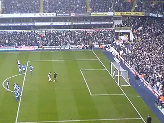 Keane rejoined Tottenham on 2 February 2009, signing for a basic fee of £12 million, potentially rising to £16 million with add-ons.[69] The deal meant that the cumulative transfer fees paid for Keane over his career amounted to around £75 million.[70] He signed a four-year contract with the north London club.[71] Keane was one of three players to make returns to Tottenham during the transfer window, along with Jermain Defoe and Pascal Chimbonda.[55] He was also made Tottenham vice-captain a week later,[72] after often deputising for Ledley King during his first spell there.[73][74][75] He was cup-tied for Spurs' appearance in the 2009 Football League Cup Final.[76] Keane scored his first goal since his return to the club on 4 March,[77] opening the scoring in the crucial 4–0 home victory against Middlesbrough.[78][79] He followed this up by scoring another vital goal, this time a last-minute equaliser, away to Sunderland in a 1–1 draw on 7 March.[80]