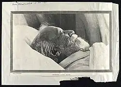 Browning died at his son's home Ca' Rezzonico in Venice on 12 December 1889.[32] He was buried in Poets' Corner in Westminster Abbey; his grave now lies immediately adjacent to that of Alfred Tennyson.[32]