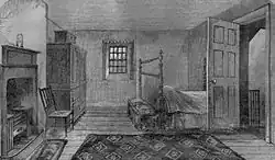 As his health began to give way, he aged prematurely and fell into fits of despondency.[44] Rumours of intemperance (alleged mainly by temperance activist James Currie)[46][47] may have been overstated.[48] Hard manual farm labour earlier in his life may have damaged Burns's health.[49] Burns possibly had a long-standing rheumatic heart condition,[50] perhaps beginning when he was 21, and a bacterial infection, possibly arising from a tooth abscess, may have exacerbated this.[51]