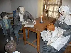 He was born in a house built by his father (now the Burns Cottage Museum). On January 26, 1759, the day after he was born Robert Burns was baptised in the Auld Kirk of Ayr by minister William Dalrymple.[6][7] Burns went on to live in the cottage until Easter 1766, when he was seven years old. William Burnes sold the house and took the tenancy of the 70-acre (280,000 m2) Mount Oliphant farm, southeast of Alloway. Here Burns grew up in poverty and hardship, and the severe manual labour of the farm left its traces in a weakened constitution.[8]