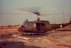 He served two tours of duty during the Vietnam War as a helicopter gunner, from 1968 to 1970.[10][11] He supported Bell UH-1 Iroquois helicopters, and was deployed to Saigon and later Bien Hoa. Asked about his experiences in 2003, he stated that they flew in "Zone C, The Phu Rieng Rubber Plantation, down to Cu Chi in the delta, over to Nui Ba Dinh, Black Virgin Mountain, and we were flying into Cambodia long before the Parrot's Beak".[12] He survived a helicopter crash aged 19, which affected his views on mortality.[13] During his time in the military one of his nicknames was "Iceman", in reference to an incident in which he intercepted a number of NVA troops crossing a river. Jordan strongly disliked the nickname. In a 2007 blog post, he stated that he "strangled that SOB, drove a stake through his heart, and buried him face down under a crossroad outside Saigon before coming home, because I knew that guy wasn't made to survive in a civilian environment." He preferred the nickname Ganesha he attained, as "the remover of obstacles".[14] He was awarded the Distinguished Flying Cross with oak leaf cluster, the Bronze Star with "V" and oak leaf cluster, and two Vietnamese Gallantry Crosses with palm.[15]