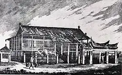 The Roman Catholic bishop rose against Morrison in 1833, leading to the suppression of his presses in Macau and removing his preferred method of spreading knowledge of Christ. His native agents, however, continued to circulate publications that had already been printed.[13] During this period Morrison also contributed to Karl Gützlaff's Eastern Western Monthly Magazine,[14] a publication aimed at improving Sino-Western understanding.