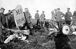When World War I started in August 1914, Greim's regiment was subordinated to the 6th Army under its commander-in-chief Generaloberst Rupprecht, Crown Prince of Bavaria. Greim, who commanded a battery during the Battle of Lorraine, distinguished himself on 25 August in the fighting near Maixe-Deuxville.[8] The 8th Field Artillery Regiment stayed in the combat area of Nancy until 24 September and then relocated to Saint-Mihiel. During combat in the Bois d'Ailly (Ailly Wood), Greim earned the Iron Cross 2nd Class (Eisernes Kreuz 2. Klasse) in November 1914.[9] On 9 March 1915, Greim became an adjutant with the 1st battalion of the 8th Field Artillery Regiment.[10] That day, he made his maiden flight as a passenger. The flight took him across the front between Saint-Mihiel and Flirey and then to the northern outskirts of Toul, approximately 15 kilometers (9.3 miles) behind enemy lines where Greim observed the 26 French artillery positions between Saint-Mihiel and Pont-à-Mousson. During this aerial reconnaissance flight, Greim took detailed notes of his observations. On 10 August, Greim began his training as an aerial observer with the Feldflieger Abteilung 3b (FFA 3b—Field Flying Company 3b).[11]