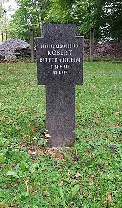 Robert Ritter von Greim (born Robert Greim; 22 June 1892 – 24 May 1945) was a German Generalfeldmarschall (Field marshal) and First World War flying ace. In April 1945, in the last days of World War II in Europe, Adolf Hitler appointed Greim commander-in-chief of the Luftwaffe (German air force) after Hermann Göring had been dismissed for treason. He was the last person to have been promoted to field marshal in the German armed forces. After the surrender of Nazi Germany in May 1945, Greim was captured by the Allies. He committed suicide in an American-controlled prison on 24 May 1945.
