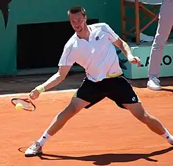 Söderling came to prominence at the 2009 French Open, where he became the first player to defeat Rafael Nadal at the tournament, and the only one to achieve it until Novak Djokovic in 2015.[2] Nadal had previously never lost at the tournament since his debut in 2005 and was the four-time defending champion. Söderling subsequently advanced to the final, defeating two-time semi-finalist Nikolay Davydenko in the quarterfinals and Fernando González in five sets in the semifinals en route before being defeated by Roger Federer in the final.[3]