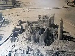 The Rock of Cashel was the traditional seat of the kings of Munster as early as the 4th century and prior to the Norman invasion.[3] In the 5th century the Eóganachta clan built a fortress at Cashel retaining supremacy there for hundreds of years.[4] In 977 Brian Boru was crowned there as king and made Cashel his capital. In 1101, the King of Munster, Muirchertach Ua Briain, donated his fortress on the Rock to the Church.[5] The picturesque complex has a character of its own and is one of the most remarkable collections of Celtic art and medieval architecture to be found anywhere in Europe.[6] Few remnants of the early structures survive; the majority of buildings on the current site date from the 12th and 13th centuries.