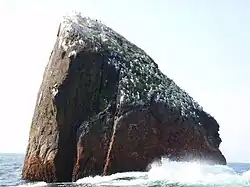 Rockall was formed during the Paleogene period, by magmatism as part of the North Atlantic Igneous Province. Rockall and Hasselwood Rock, 200 metres north, are the only emergent parts of Helen's Reef and the Rockall Plateau. Twenty-nine-metre waves just east of Rockall were reported in 2006 as the largest ever recorded by scientific instruments in the open ocean.[5] Rockall's first named geographic location and only occupiable area is Hall's Ledge.[6]