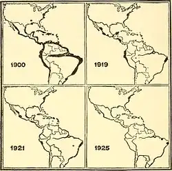 The Sanitary Commission for the Eradication of Hookworm Disease was a Rockefeller-funded campaign from 1909 to 1914 to study and treat hookworm disease in 11 Southern states.[26][27][28] Hookworm was known as the "germ of laziness". In 1913, the foundation expanded its work with the Sanitary Commission abroad and set up the International Health Division [29] (also known as International Health Board), which began the foundation's first international public health activities. The International Health Division conducted campaigns in public health and sanitation against malaria, yellow fever, and hookworm in areas throughout Europe, Latin America and the Caribbean including Italy, France, Venezuela, Mexico,[30][31] and Puerto Rico,[32] totaling fifty-two countries on six continents and twenty-nine islands.[33] The first director was Wickliffe Rose, followed by F.F. Russell in 1923, Wilbur Sawyer in 1935, and George Strode in 1944. A number of notable physicians and field scientists worked on the international campaigns, including Lewis Hackett, Hideyo Noguchi, Juan Guiteras, George C. Payne, Livingston Farrand, Cornelius P. Rhoads, and William Bosworth Castle. In 1936, The Rockefeller Foundation received one of the first awarded Walter Reed Medals from The American Society of Tropical Medicine & Hygiene to recognize its study and control of Yellow Fever.[34] The World Health Organization, seen as a successor to the IHD, was formed in 1948, and the IHD was subsumed by the larger Rockefeller Foundation in 1951, discontinuing its overseas work.[29]