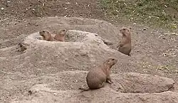 Though some species are common pests for humans, rodents also play important ecological roles.[1] Some rodents are considered keystone species and ecosystem engineers in their respective habitats. In the Great Plains of North America, the burrowing activities of prairie dogs play important roles in soil aeration and nutrient redistribution, raising the organic content of the soil and increasing the absorption of water. They maintain these grassland habitats,[23] and some large herbivores such as bison and pronghorn prefer to graze near prairie dog colonies due to the increased nutritional quality of forage.[24]