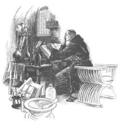 The Letter on the Secret Workings of Art and Nature and on the Vanity of Magic (Epistola de Secretis Operibus Artis et Naturae et de Nullitate Magiae),[69] also known as On the Wonderful Powers of Art and Nature (De Mirabili Potestate Artis et Naturae), a likely-forged letter to an unknown "William of Paris," dismisses practices such as necromancy[70] but contains most of the alchemical formulae attributed to Bacon,[68] including one for a philosopher's stone[71] and another possibly for gunpowder.[56] It also includes several passages about hypothetical flying machines and submarines, attributing their first use to Alexander the Great.[72] On the Vanity of Magic or The Nullity of Magic is a debunking of esoteric claims in Bacon's time, showing that they could be explained by natural phenomena.[73]