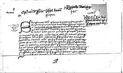 Roger Bacon was born in Ilchester in Somerset, England, in the early 13th century. His birth is sometimes narrowed down to 1210,[8] 1213 or 1214,[9] 1215[10] or 1220.[11] The only source for his birth date is a statement from his 1267 Opus Tertium that "forty years have passed since I first learned the Alphabetum".[12] The latest dates assume this referred to the alphabet itself, but elsewhere in the Opus Tertium it is clear that Bacon uses the term to refer to rudimentary studies, the trivium or quadrivium that formed the medieval curriculum.[13] His family appears to have been well off.[14]
