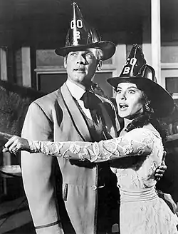 In March 1954, MGM signed Moore to a seven-year contract.[15] He started his MGM contract with a small role in The Last Time I Saw Paris (1954), flirting with Elizabeth Taylor. He appeared in Interrupted Melody, a biographical movie about opera singer Marjorie Lawrence's recovery from polio, in which he was billed third under Glenn Ford and Eleanor Parker as Lawrence's brother Cyril.[16] That same year, he played a supporting role in the swashbuckler The King's Thief starring Ann Blyth, Edmund Purdom, David Niven and George Sanders.[17]