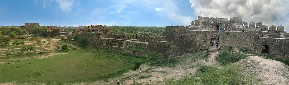 Rohtas Fort (Punjabi: روہتاس قلعہ, romanized: Rohtās Qillā; Urdu: قلعہِ روہتاس, romanized: Qilā-e-Rohtās) is a 16th-century fortress located near the city of Dina in Jhelum district of the Punjab province, Pakistan. Commissioned by Sur emperor Sher Shah Suri, its construction was supervised by Raja Todar Mal and is now one of the largest and most formidable forts in Punjab.[2]