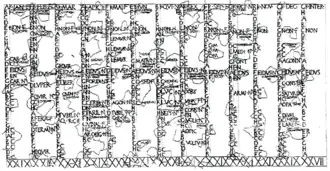 A reproduction of the Fasti Antiates Maiores, a painted wall-calendar from the late Roman Republic