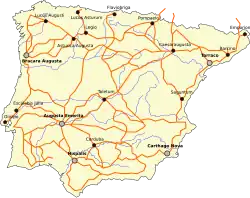 - Iter ab Emerita Asturicam, from Sevilla to Gijón. Later known as Vía de la Plata (plata means "silver" in Spanish, but in this case it is a false cognate of an Arabic word balata), part of the fan of the Way of Saint James. Now it is the A-66 freeway.