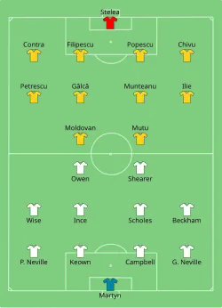 Adrian Ilie scored the only goal with a fine chip in their first match against Colombia at Lyon's Stade Gerland. In Toulouse, they met an England side starting with prodigal striker Michael Owen on the bench, with Teddy Sheringham preferred alongside Alan Shearer. A mistake by Tony Adams was punished by Viorel Moldovan, who played for Coventry City, before Owen came on to claim an equalizer. But Romania won with a wonderful late goal from Dan Petrescu, also playing in England with Chelsea, fighting off his club teammate Graeme le Saux and nutmegging goalkeeper David Seaman.