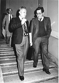 This issue came back again in 2005, when Prodi was accused of being "a KGB man" by Mario Scaramella.[19] The allegations were rejected by Prodi. Former Federal Security Service (FSB) officer Alexander Litvinenko also said that FSB deputy chief Anatoly Trofimov "did not exactly say that Prodi was a KGB agent, because the KGB avoids using that word."[20] The same accusation was raised in 2002 by the Mitrokhin Commission, which was closed in 2006 with a majority and a minority report, without reaching shared conclusions, and without any concrete evidence given to support the original allegations of KGB ties to Italian politicians contained in the Mitrokhin Archive. Led by the centre-right coalition majority, it was criticized as politically motivated, as it was focused mainly on allegations against opposition figures.[21] 2006 saw the publication of telephone interceptions between the chairman of the Mitrokhin Commission, Forza Italia senator Paolo Guzzanti, and Scaramella. In the wiretaps, Guzzanti made it clear that the true intent of the Mitrokhin Commission was to support the hypothesis that Prodi would have been an agent financed or in any case manipulated by Moscow and the KGB.[22][23] According to the opposition, which submitted its own minority report, this hypothesis was false, and the purpose of the commission was therefore to discredit him.[24] In the wiretaps, Scaramella had the task of collecting testimonies from some ex-agents of the Soviet secret service refugees in Europe to support these accusations; he was later charged for calumny.[25]
