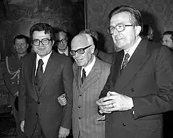 In 1969, Prodi married Flavia Franzoni, at that time a student, who later became an economist and university professor. The couple was married by Camillo Ruini, now a well-known cardinal.[6][7] They have two sons, Giorgio and Antonio. His wife, Flavia, died on 13 June 2023 at the age of 76.[8]