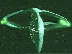 The Warbird was developed by Andrew Probert with the model built by Greg Jein.[23] In the series it was introduced in the episode "The Neutral Zone" and seen on a recurring basis in the franchise from then on.[23] In the Star Trek universe, it is twice as big as Picard's Enterprise D and is powered by an artificial quantum singularity.[23] It is noted for its size and power in Star Trek by Picard and his crew.[24] In 2017, Space.com said the Warbird was the 9th best spacecraft in the Star Trek franchise.[25] In 2020, CNET ranked the Romulan Warbird the 16th most powerful spacecraft in Star Trek.[24]