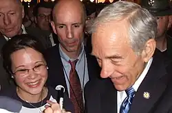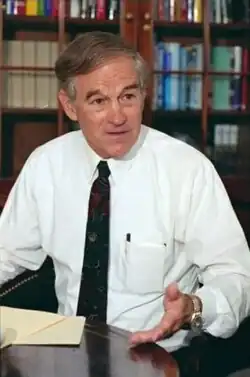 Paul served as a flight surgeon in the U.S. Air Force from 1963 to 1968, and worked as an obstetrician-gynecologist from the 1960s to the 1980s.[5] When his son, Rand Paul, was elected as a U.S. senator from Kentucky in 2011, Paul became the first U.S. representative in history to serve concurrently with a child in the Senate.[6] He is a senior fellow and distinguished counselor of the Mises Institute,[7] and has published a number of books and promoted the ideas of economists of the Austrian School, such as Murray Rothbard, Friedrich Hayek, and Ludwig von Mises, during his political campaigns. He has cited President Grover Cleveland as his preferred model of presidency.[8]