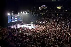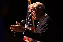 After the popularity and grassroots enthusiasm of his 2008 presidential bid, Paul announced in July 2011 that he would not seek reelection to Congress in order to focus on his 2012 bid for the presidency.[9] Finishing in the top four with delegates in both races (while winning four states in the 2012 primaries), he refused to endorse the Republican nominations of John McCain and Mitt Romney during their respective 2008 and 2012 campaigns against Barack Obama. In May 2012, Paul announced that he would not be competing in any other presidential primaries but that he would still compete for delegates in states where the primary elections had already been held.[10] At both the 2008 and 2012 Republican National Conventions, Paul received the second-highest number of delegates, behind only McCain and Romney, respectively.