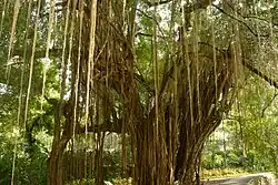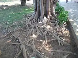 Examples and notes: in many monocots the functional root system is adventitious (forming a fibrous habit); maize (Zea mays) produces nodal brace/prop roots that stabilise the stem; banyan (Ficus spp.) develops aerial adventitious roots that may become supportive trunks; many cuttings root adventitiously during vegetative propagation.[20]