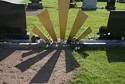 In 1972, Gallagher was voted "Guitarist of the Year" in a Melody Maker readers' poll.[56] He received an award in the shape of five gold sunbeams, a design later replicated on his headstone at St Oliver's Cemetery in Cork. That year, Gallagher also embarked on his first US solo tour, which included a five-night residency at the Whisky a Go Go in Los Angeles with Little Feat.[52]