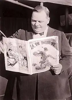 Roscoe Conkling "Fatty" Arbuckle (/ˈɑːrbʌkəl/; March 24, 1887 – June 29, 1933) was an American silent film actor, director, and screenwriter. He started at the Selig Polyscope Company and eventually moved to Keystone Studios, where he worked with Mabel Normand and Harold Lloyd as well as with his nephew, Al St. John. He also mentored Charlie Chaplin, Monty Banks and Bob Hope, and brought vaudeville star Buster Keaton into the movie business. Arbuckle was one of the most popular silent stars of the 1910s and one of the highest-paid actors in Hollywood, signing a contract in 1920 with Paramount Pictures for $1 million a year (equivalent to $15.7 million in 2024).