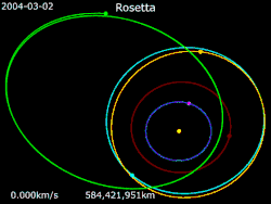 Animation of Rosetta's trajectory from 2 March 2004 to 9 September 2016